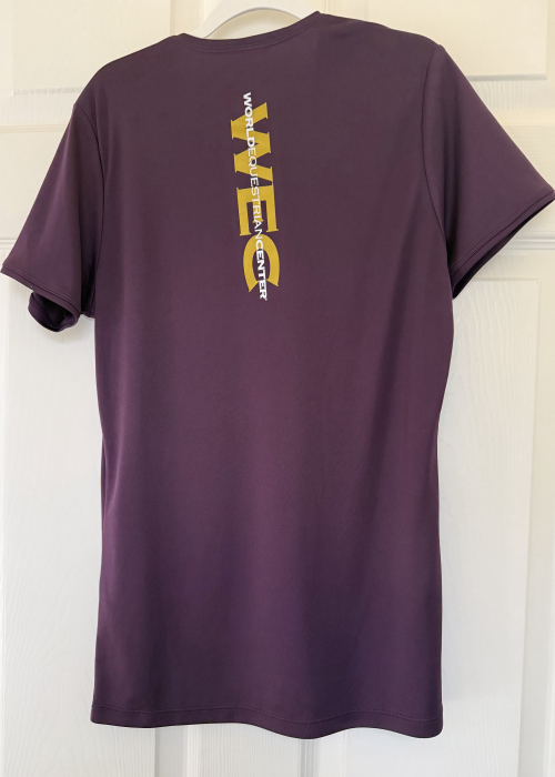 Seller's Description: Plum colored short sleeve Arista equestrian top - never been worn . WEC logo