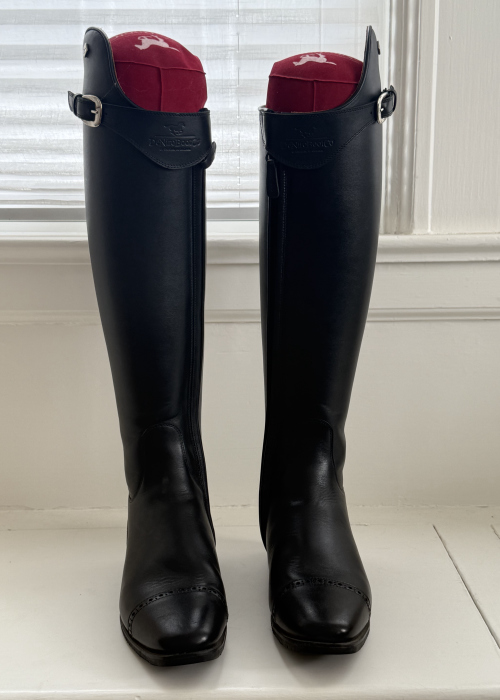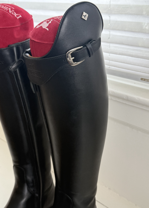 Seller's Description: The model is the JB, which was is a model De Niro created with their sponsored rider, Jessica von Bredow-Werndl.I wore them twice to begin breaking them in but have never formally ridden in them. They are in mint condition. The boots are made from calfskin leather, have a full length zipper on the inside, a snap closure, and a zipper guard. They are 38.5. I am 5'2 and typically wear a 7.5 and these fit me beautifully.